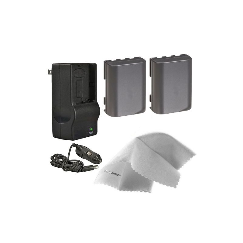 Canon EOS Rebel XT High Capacity 'Intelligent' Batteries (2 Units) + AC/DC Travel Charger + Nw Direct Microfiber Cleaning Cloth.