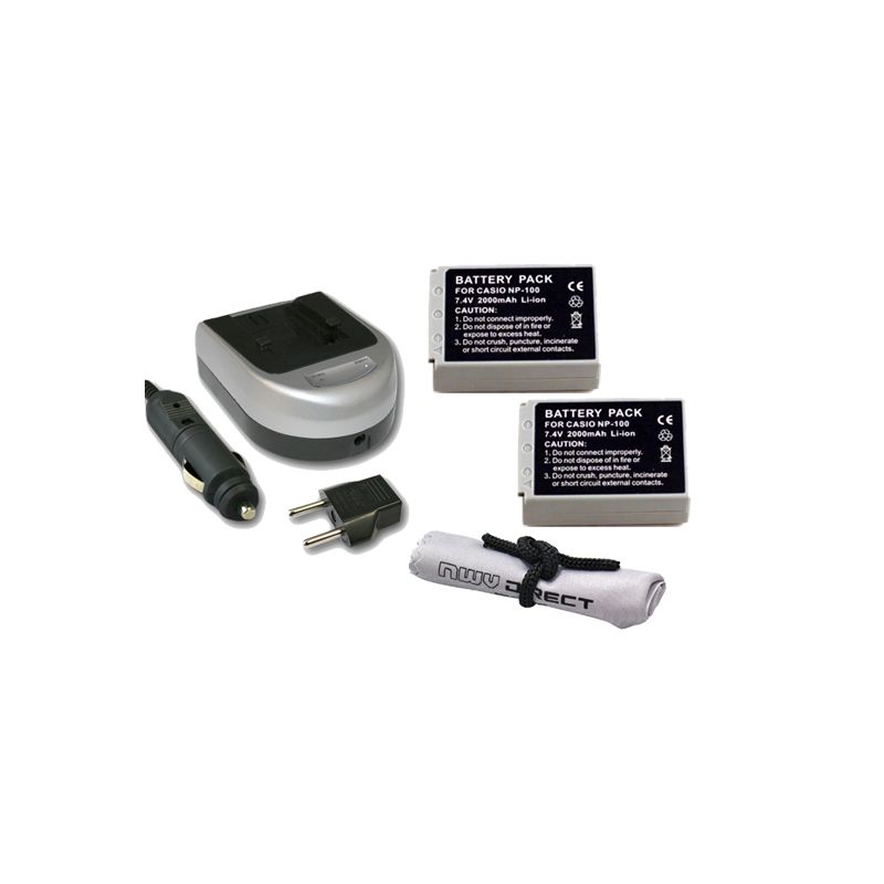 Casio Exilim Pro EX-F1 High Capacity Batteries (2 Units) + AC/DC Travel Charger + Nw Direct Microfiber Cleaning Cloth.