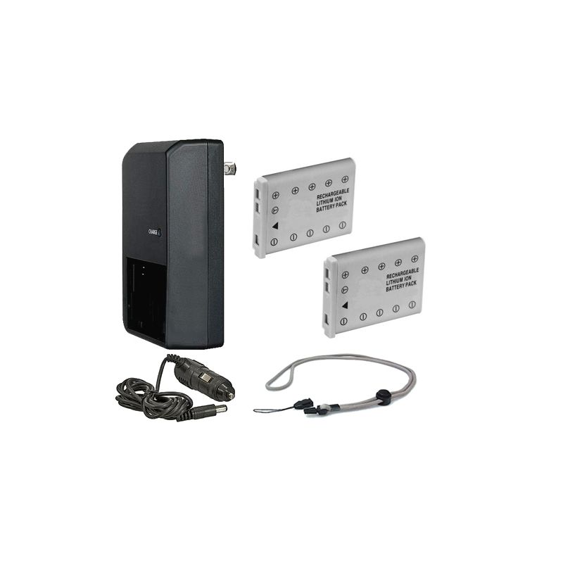 Olympus FE-5020 High Capacity Batteries (2 Units) + AC/DC Travel Charger + Krusell Multidapt Neck Strap (Black Finish)