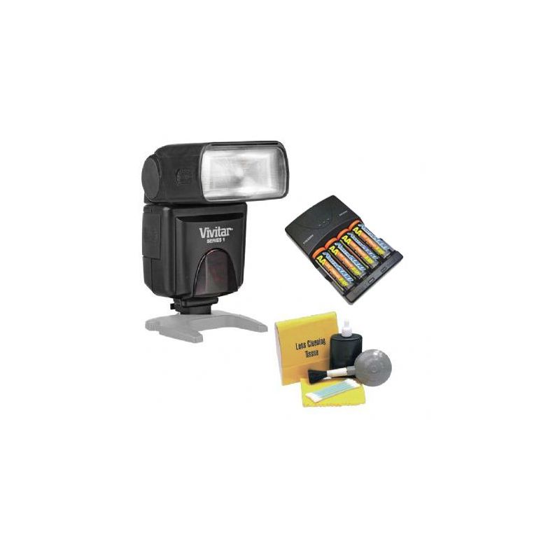 This Item Includes: 1. Flash 2. Flash Pouch 3. Flash Diffuser 4. Flash Reflecting Plate 5. AC Rapid Battery Charger 6. 4 (2900Mah) Batteries 7. 5 Piece Cleaning Kit